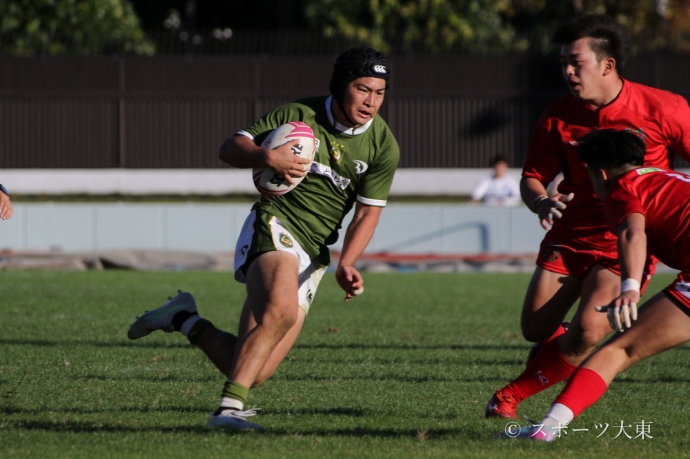 後半立ち上がりから、両チームともチャンスを活かせずに迎えた後半20分、大東大は流経大のハイタックルのペナルティから得たラインアウトを起点に攻撃を組み立てる。