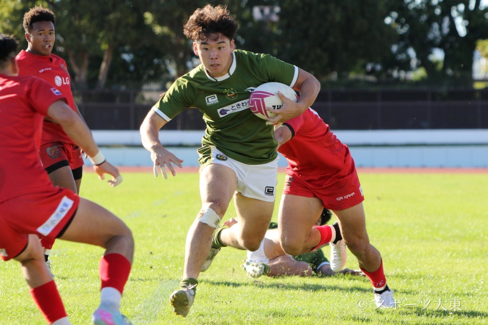 ゴールは外れ10-17とし、追加点で同点に追いつきたい大東大。しかし、トライ直後の流経大のキックカウンターでタックルを決められず、トライを許し、10-24と突き放される。