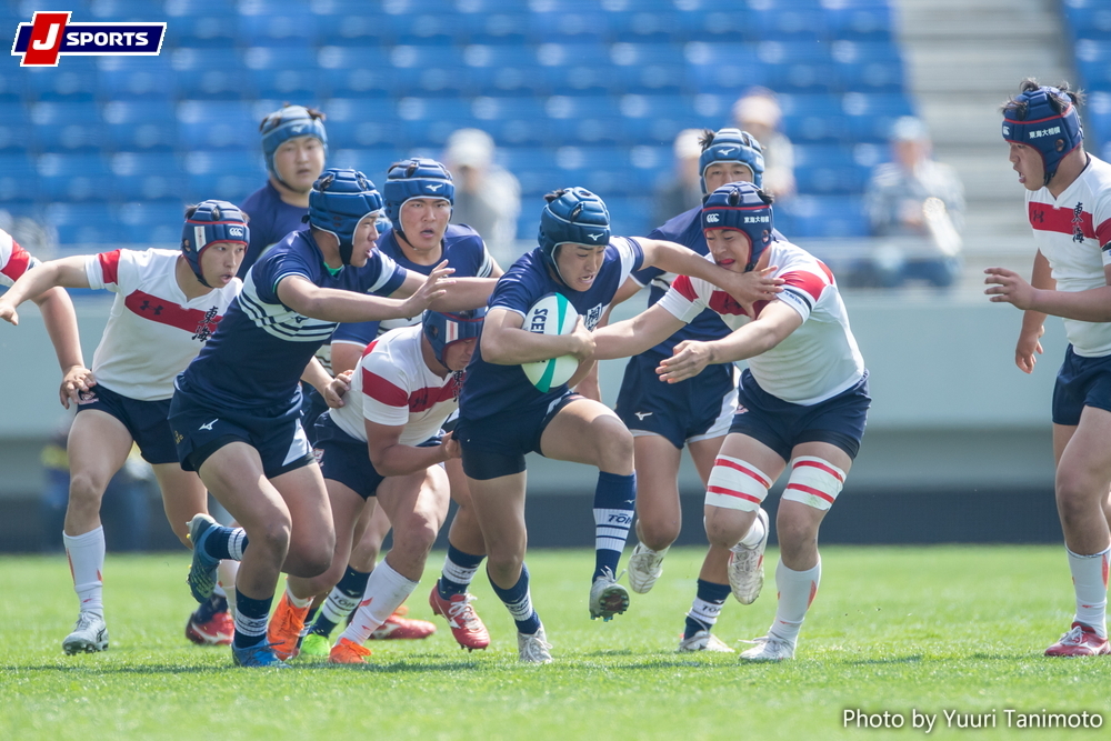 準決勝の法政二戦。カウンターから先制トライを奪うと、正確な右脚でハーフタイムを挟んで3本のペナルティゴールを追加。16-7とリードを広げて優位に立った。