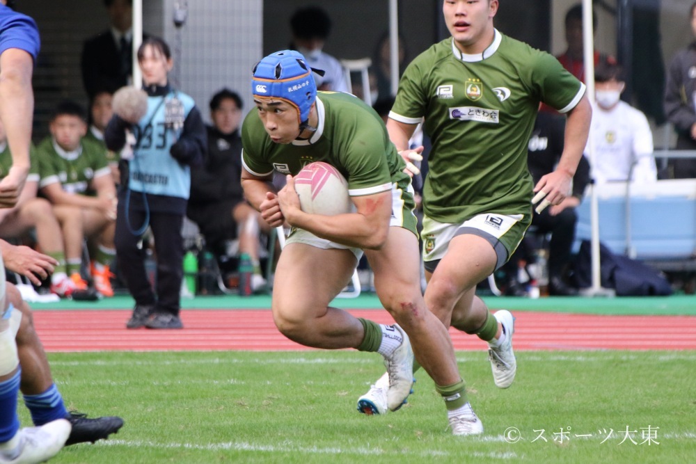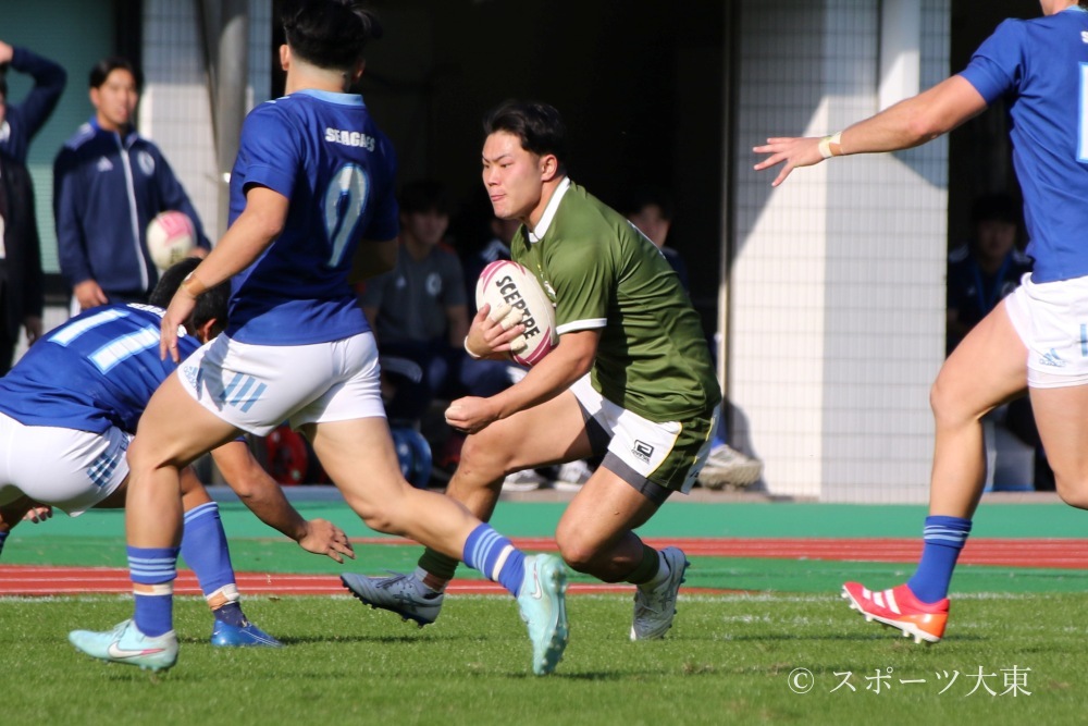 悪い流れを断ち切りたい大東大は、2年生が力を発揮する。30分に自陣ゴール前でのディフェンスでWTB(ウイング)大方維織(経営2=青森山田)が、相手FL(フランカー)の懐に差し込む強烈なタックルでノックフォワードを誘発し、攻撃を食い止める。