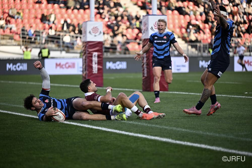 WTB長田智希がオフロードを防ぐ好守をみせたが、ノーラックで繋がれてCTBトルニケ・カホイゼが渾身のトライ。さらにSOテド・アブジャンダゼのコンバージョン成功で、ジョージアが歓喜の逆転を果たした。(22-23)