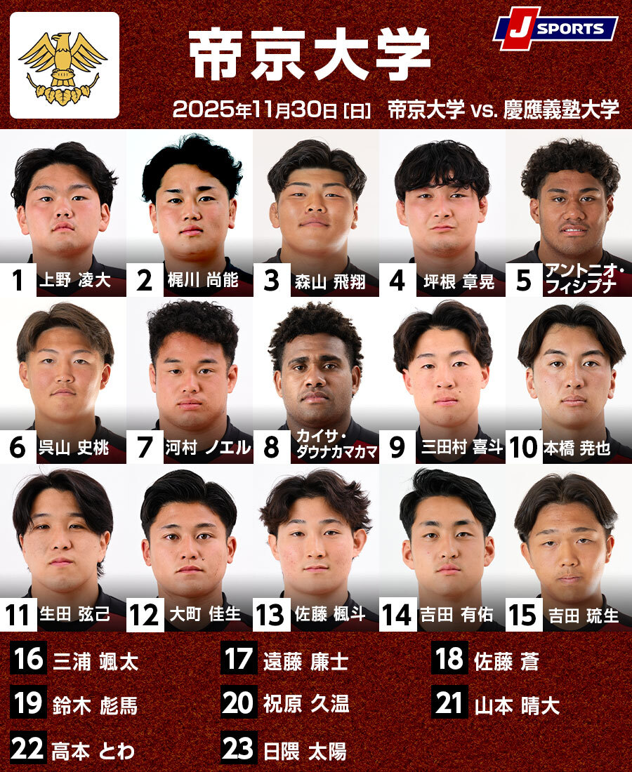 その帝京は、慶應戦へ向けて明治戦から先発3名を変えてきた。