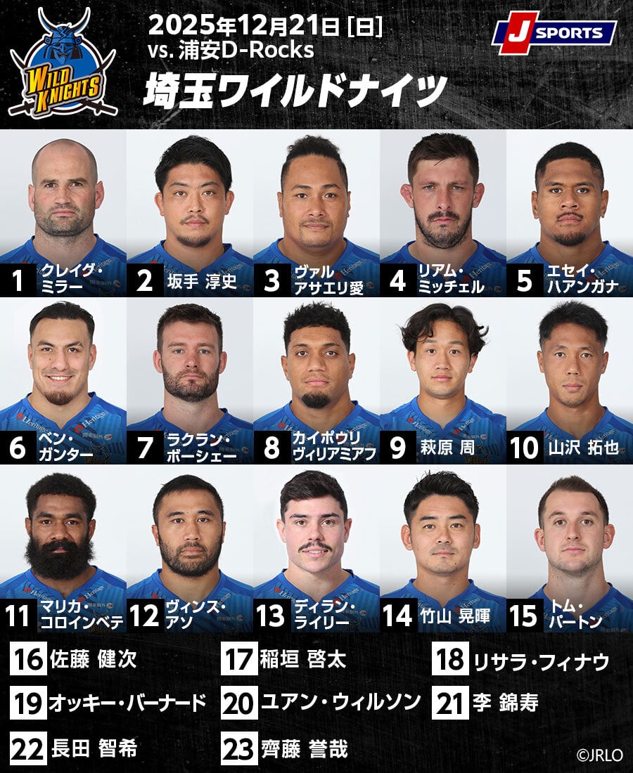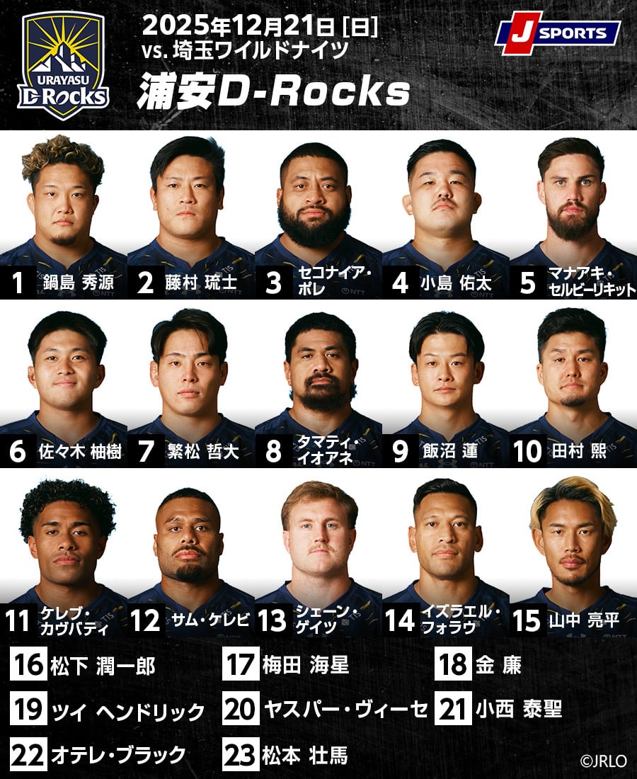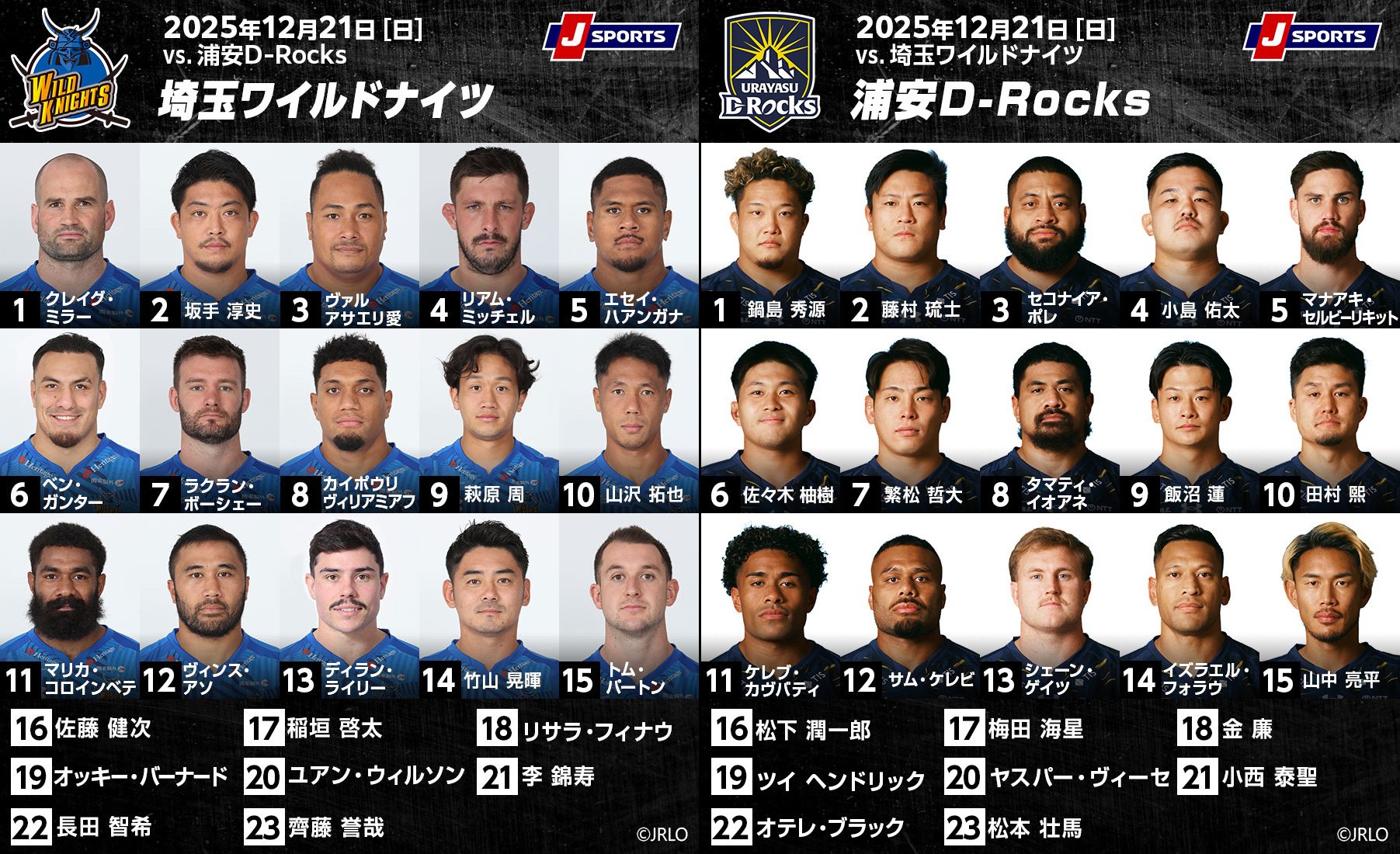 対する浦安Dは、本来のキャプテンのHO藤村が先発し、3番のPRは金廉がリザーブに下がって、セコナイア・ポレが先発。BKでは、SH飯沼蓮、SO田村煕のハーフ団ほか前節と同じメンバーが並ぶが、14番のWTBのみ、タナ・トゥハカライナに代わってオーストラリア代表のイズラエル・フォラウが入る。さらに強力なランナーが加わって、FB山中亮平、カヴバティと決定力あるバックスリーが並ぶ。フォラウはハイボールにも強く、埼玉WKの脅威になるだろう。埼玉WKのライリーと、浦安Dのシェーン・ゲイツの日本代表CTB対決。コロインベテとフォラウのオーストラリア代表対決など、マッチアップも興味深い。