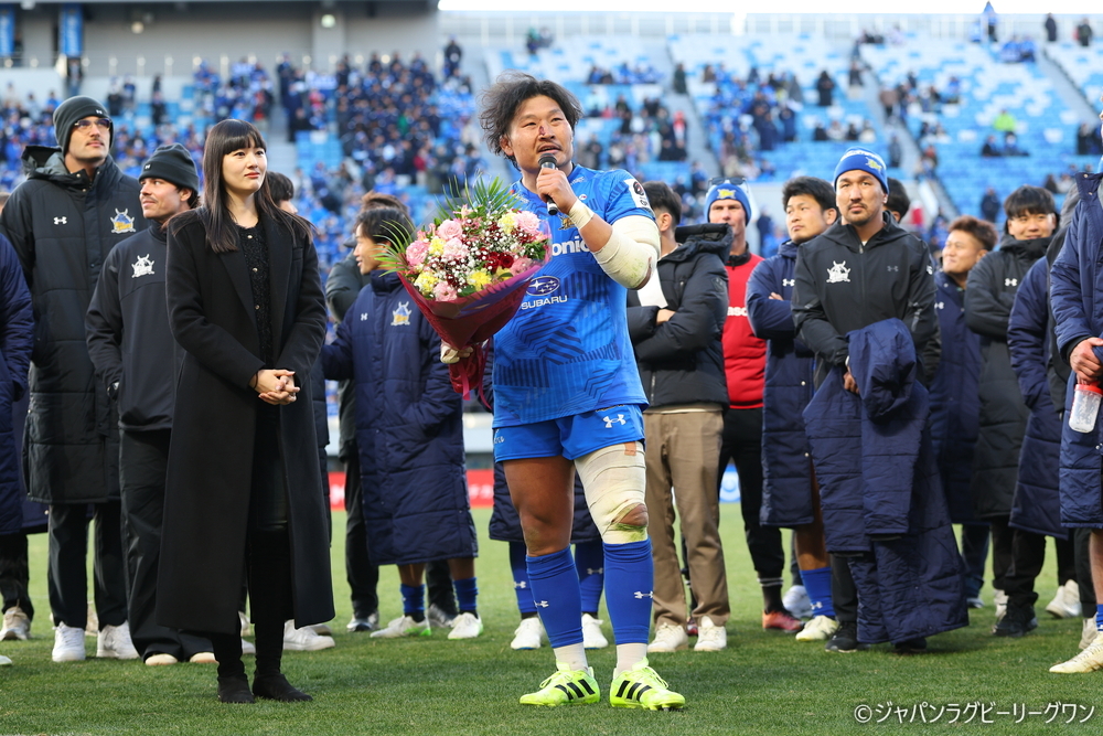 試合後には、前節にワイルドナイツキャップ150に達したPR稲垣啓太を称えるセレモニーがおこなわれた。妻・貴子さんも登場し、表情を緩めたベテランは試合後、「自分が愛したチームに、こうやって愛されるのは光栄です」と話した。