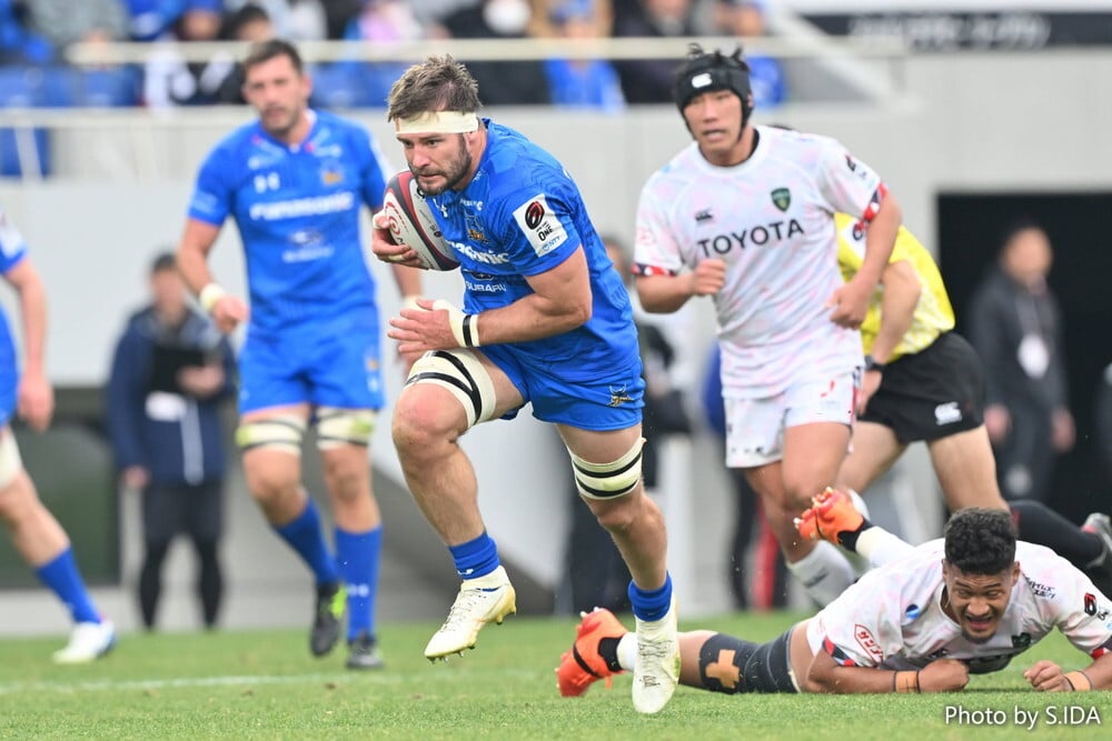 サンゴリアスはハーフタイム直前に反則から攻め込まれ、FBチェスリン・コルビがデリバレイトノックフォワード。相手にペナルティトライを与えたのは痛かったけれど、試合後にFLサム・ケイン主将が「接戦で負けたのは悔しい。しかし、前半は22メートルに入ったらポイントを得て自陣に戻ることができていたし、ディフェンスも長く耐えられた」と振り返ったようにうまく戦えていた。