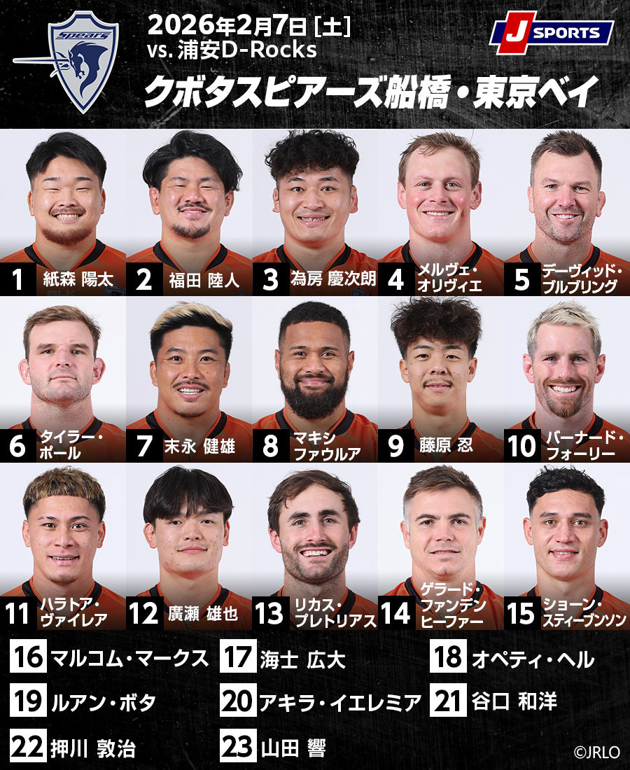 好調の2位「クボタスピアーズ船橋・東京ベイ」が連敗阻止へ!7位「浦安D-Rocks」は“不敗神話”に挑む!ジャパンラグビーリーグワン2025-2026D1第7節交流戦