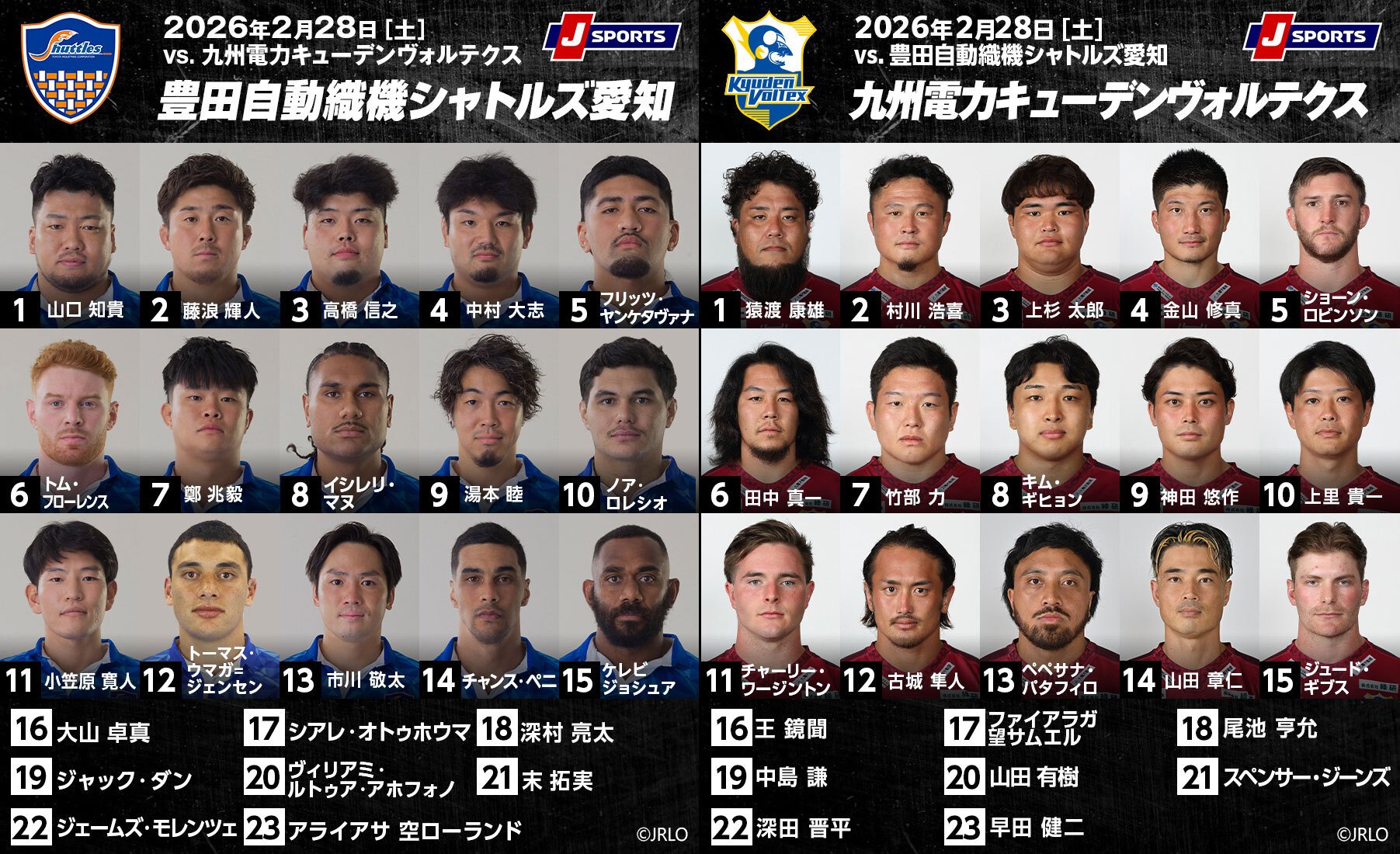 対する九州電力キューデンヴォルテクス(九州KV)は、前節、首位の花園Lに果敢に挑んだが、38-50で敗れた。途中出場のNO8コルビー・ファインガアは「多くのポジティブな要素があった。花園Lはアタックに関してインパクトが大きくて強いチームですが、ディフェンスではしっかり対抗できた」と話し、手ごたえをつかんだ様子。S愛知に対しても万全の準備で臨むだろう。
