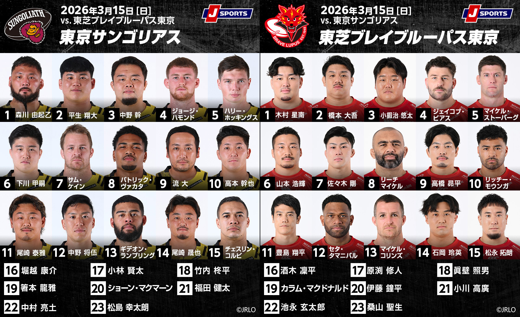 放送日時:2026年3月15日(日)午後 2:20 ~ J SPORTS 3