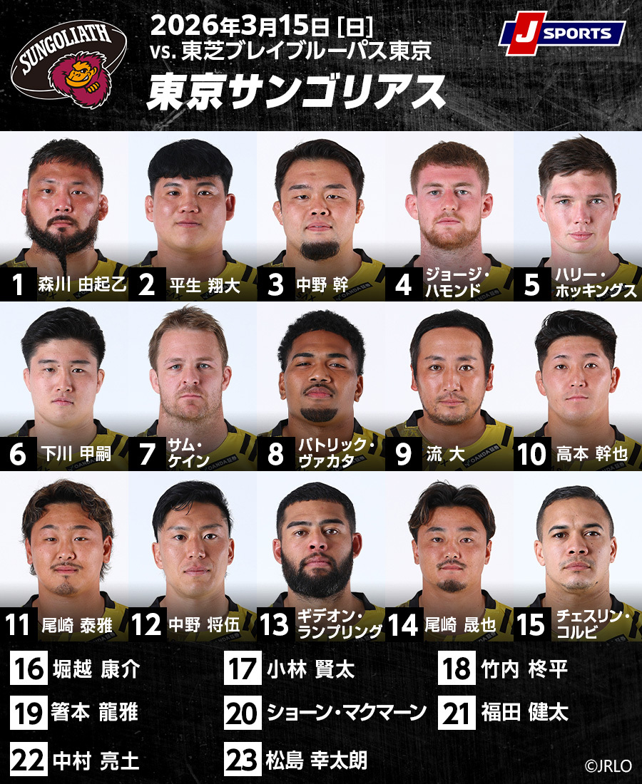 対するBL東京は第10節(2月28日)のメンバーから先発で5名の変更。FW第一列のPR(1番、3番)は木村星南、小鍛治悠太。連覇を支えた両PRだが、今季は小鍛治がリザーブからの出場が多かった。今季初先発となる。SHは杉山優平がリザーブに下がって、高橋昂平が先発。11番のWTBにベテランの豊島翔平が入り、11番だったマイケル・コリンズが13番のCTBへ。前節13番のセタ・タマニバルが12番に移動する。14番のWTBはネタニ・ヴァカヤリヤに代わって石岡玲英が入った。