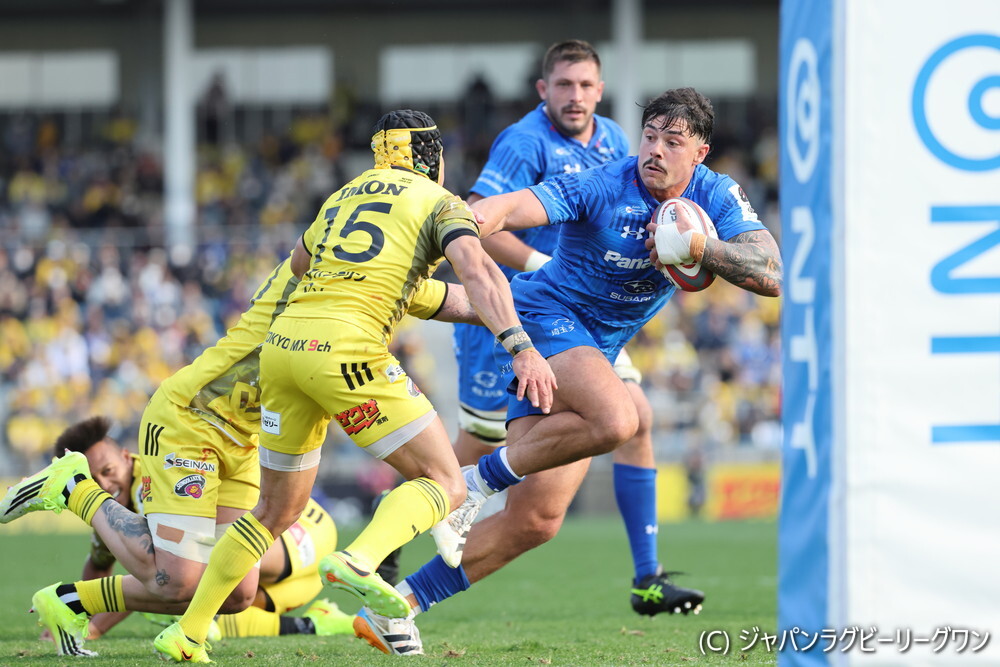 結論から書くと、ラストシーンの直前までリードしていた側はサンゴリアス。しかし後半45分、ワイルドナイツのPRリサラ フィナウがインゴールに飛び込んで初めて立場が入れ替わった。