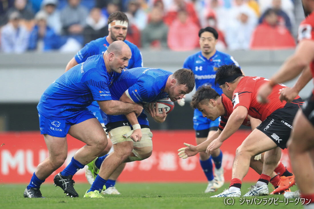 雨中の熊谷ラグビー場で、リーグ初代王者が貫禄のパフォーマンスを見せた。