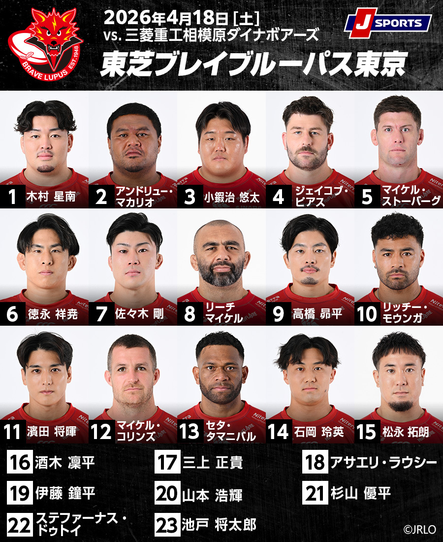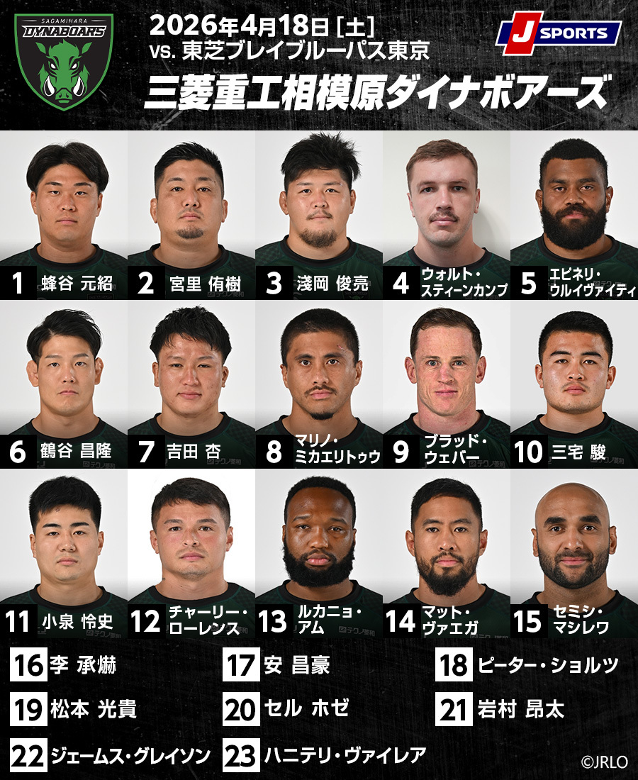 4月18日(土)、ギオンスタジアム(相模原)では、三菱重工相模原ダイナボアーズ×東芝ブレイブルーパス東京がおこなわれる。