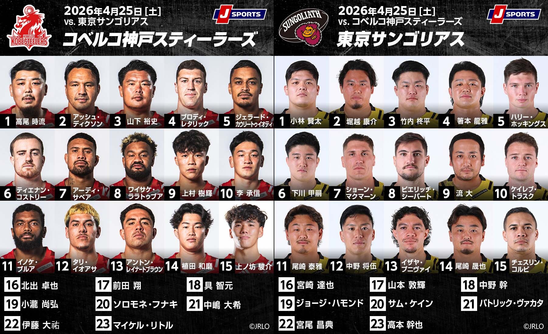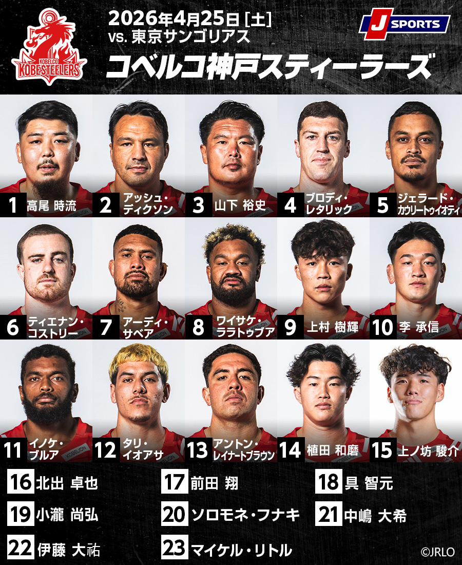 リーグ戦終盤!首位を狙う2位「コベルコ神戸スティーラーズ」×連敗脱出を期す5位「東京サントリーサンゴリアス」!ジャパンラグビーリーグワン2025-2026D1第16節