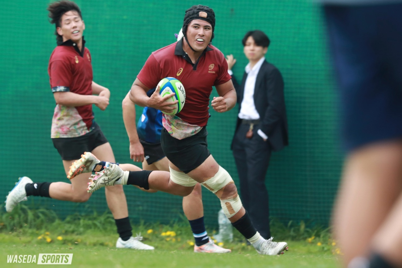 筑波大とは昨年の対抗戦で対戦した。早大は好機を確実に得点に結びつける堅実な試合運びを見せ、PG(ペナルティゴール)で着実に加点。守備でも集中力を切らさず、筑波大のアタックを封じ込める。終盤の連続トライで勝負を決定づけ、39-13と快勝。盤石の強さを印象づけた。