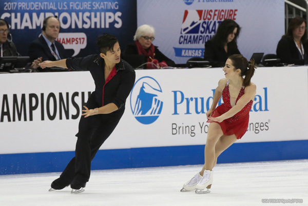昨シーズン、故障によりグランプリシリーズ(GPS)を辞退したヘイヴン・デニー/ブランドン・フレイジャー組。今季のスケートアメリカでは準優勝するなど、復帰後は安定した成績を残している。今回の全米選手権では、デニーの足のサポーターが痛々しく目を引いたが、高さと幅のあるダイナミックなスロージャンプ、パワフルなパフォーマンスは健在。落ち着いた表情で滑りきった。SP(ショートプログラム)もFS(フリースケーティング)もマリナ・ズエワ振り付けによるプログラム。さらに繊細な表現も加わって、バランスの取れた新王者が誕生した。