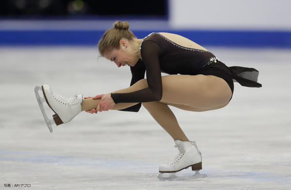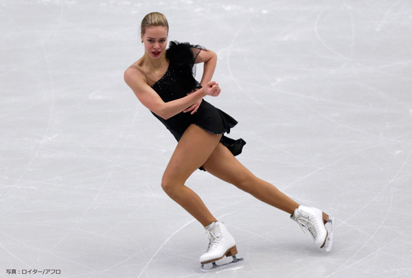 今季のロシア選手権ではポゴリラヤを抑えて3位に入ったマリア・ソツコワ。シニアデビューのシーズンにして、NHK杯の銅メダリストとなったこの勢いのある16歳は、SPでも落ち着いていた。3つのジャンプをしっかり下り、スピン、ステップの4つのエレメンツでレベル4を獲得。今できることをやりきった演技でPBを更新した。表現力の面で若さゆえの硬さが見られたが、それはこれから身に付いていく部分。FSではジャンプのミスが目立ち失速したが、蝶が舞うような、指先まで美しいパフォーマンスで存在感を示した。基礎がしっかりできているクリーンな演技、優雅さを醸し出す柔軟性はソツコワの大きな武器だろう。