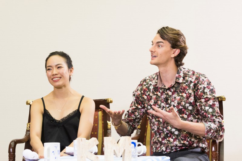 ——そうなん?教室…どうしよう、全然返せへんわ(笑)。なんか今日はちょっと『新婚さんいらっしゃい』みたいな気分でやるので、よろしくお願いします。え~と、アイスダンスのカップルで活躍してるんですけど、公私ともにパートナー。で、もう結婚しはったんやね?