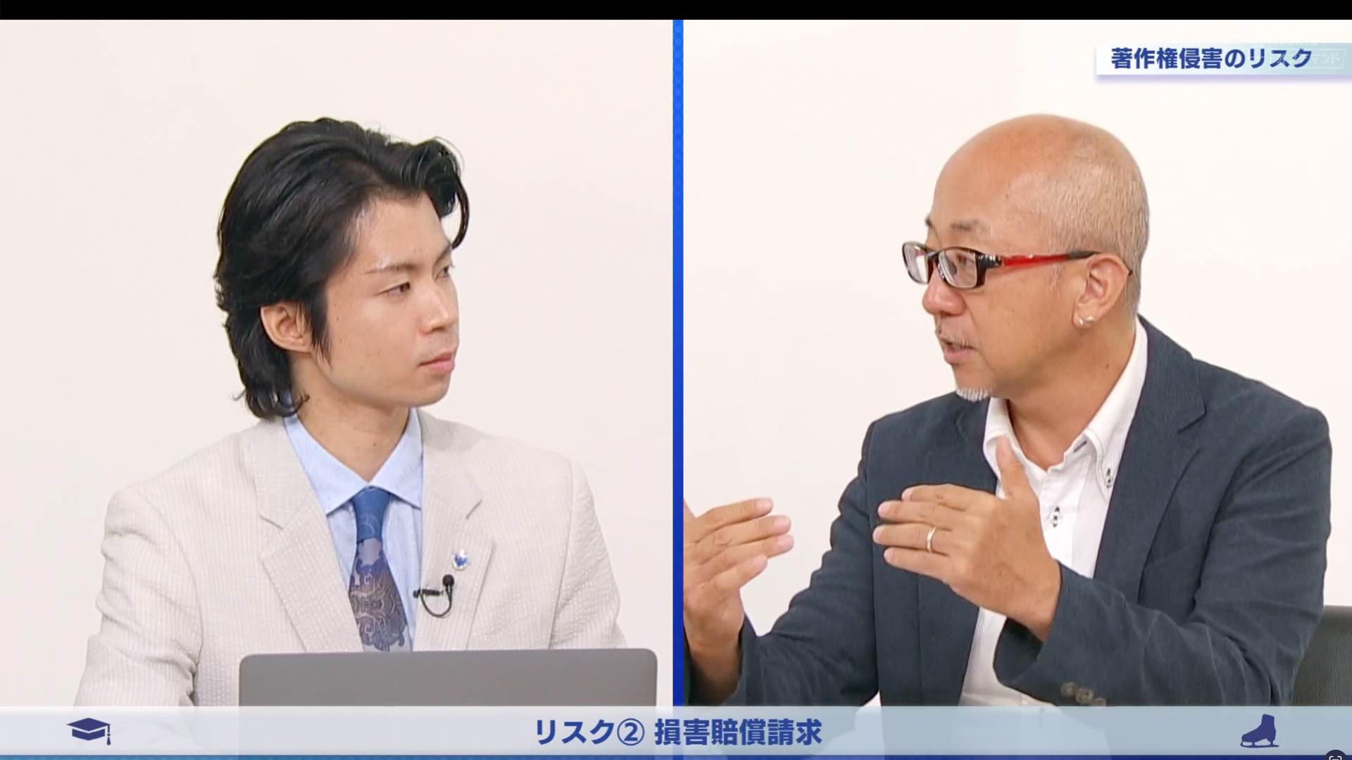 また、第二のリスクは損害賠償請求です。著作権者や著作者は、権利を侵害している人に対して、無許諾利用によって被った損害の賠償請求を行うことができます。従って、もしスケーターの音楽利用が著作権侵害だと判断された場合、事後に著作権者から音楽使用料ないし損害賠償を請求される恐れがあります。福井弁護士はこの損害賠償請求について、「楽曲利用者の過失による侵害があった場合、基本的には実損害額として本来支払うべきであった使用料に相当する額が請求されることになるが、法的には侵害だったことも加味して損害額を算定してよいという明文が導入されたこともあり、実際にはそれ以上のかなり高い金額を請求される恐れがある」と説明しています。