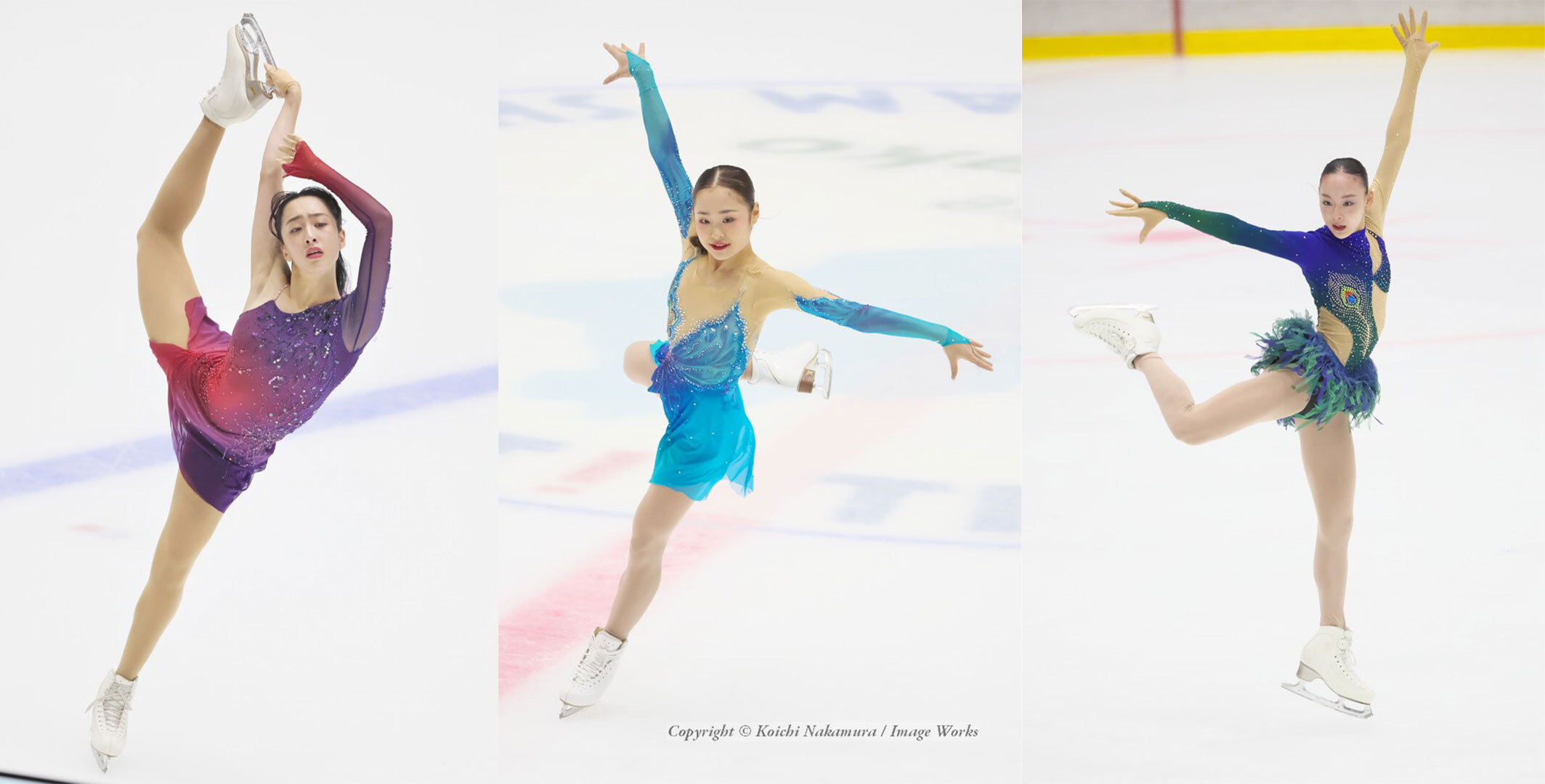 櫛田育良が総合2位。ショート、フリー共にGOEでマイナス評価が一つもないという美しいプロトコルを残した。既に知られている通り、彼女は今季からアイスダンスとの二刀流に挑む。パートナーの島田高志郎がアイスダンスに専念する傍ら、毎日シングルとアイスダンス、両方の練習をこなす多忙の日々だ。氷上練習だけで毎日5時間半をこなしているそうで、宇治のリンクでの取材の折、「だいぶ慣れてペースがつかめてきました」とコメントした瞬間、私と目が合った島田高志郎が、(信じられない)という表情で頭を振ったのが印象的だった。結果としてシングルの練習時間は減っているはずなのだが、今季の櫛田選手は充実一途の印象だ。アイスダンスの練習がシングルにもとても良い影響を及ぼしているようで、体幹がしっかりしたためか昨シーズンよりもジャンプが安定しており、またつなぎの部分の滑らかさも大きく向上。足元のスケートと振付が連動し、ジャンプすらも振付の一部であるかのような流れを感じさせ、これこそが本物の表現力だと感動を覚える演技だった。もっとも本人はまだ満足していない様子で、ショート、フリー共に「スピン、ステップで詰まってしまう部分があった」と改善を目指していた。今季はアイスダンスでは四大陸選手権への出場を目指すというが、シングルでも世界ジュニア選手権への再度の出場が期待できそうだ。ハードスケジュールではあるが、くれぐれも気を付けて、さらなる高みを見せてもらいたい。