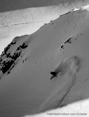 この大会は人の手がついていない真っ新な斜面を、スタートとゴールをきめ、安全に考慮しつつ、アグレッシブに滑り降りた滑り手が勝利を収めるというもの。レベルに応じて4つのカテゴリーに分かれており、どのクラスにおいてもこのシステムは変わらない。