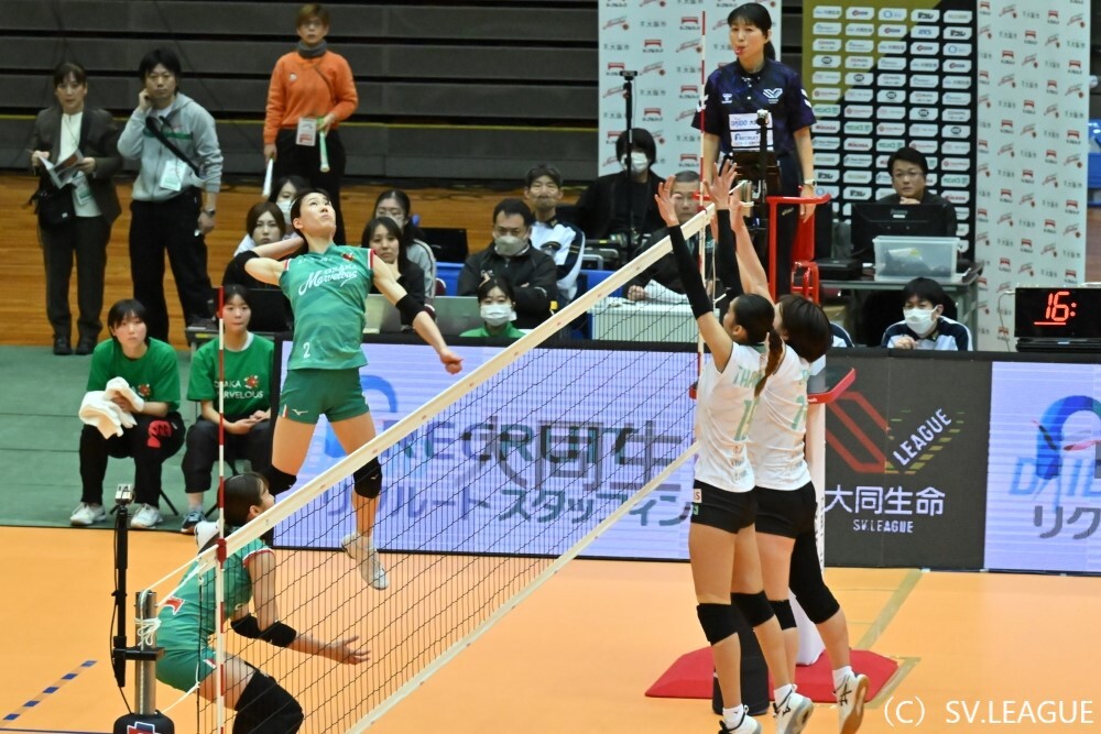 首位で2025年を迎えた大阪マーヴェラスは、本拠地で未だ勝ち星のない群馬グリーンウイングスを迎え撃つと、GAME1から強さを見せつけビジターチームを圧倒。