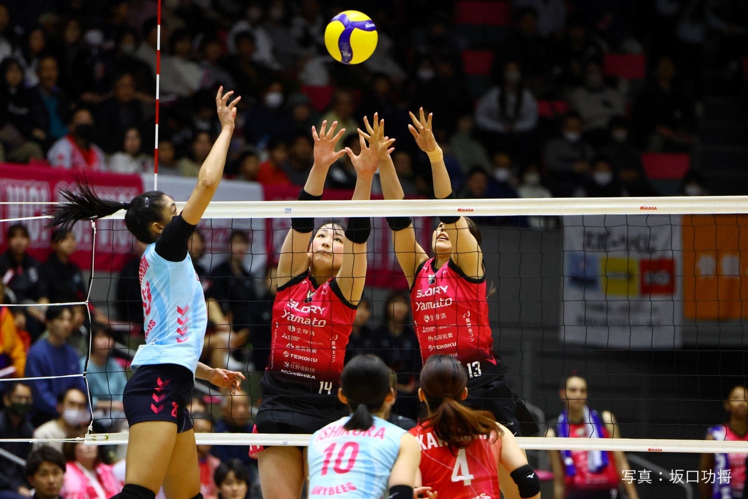と同時に、その試合で見逃せない活躍を披露したのが、こちらは入団2季目のミドルブロッカー、足立溜奈である。