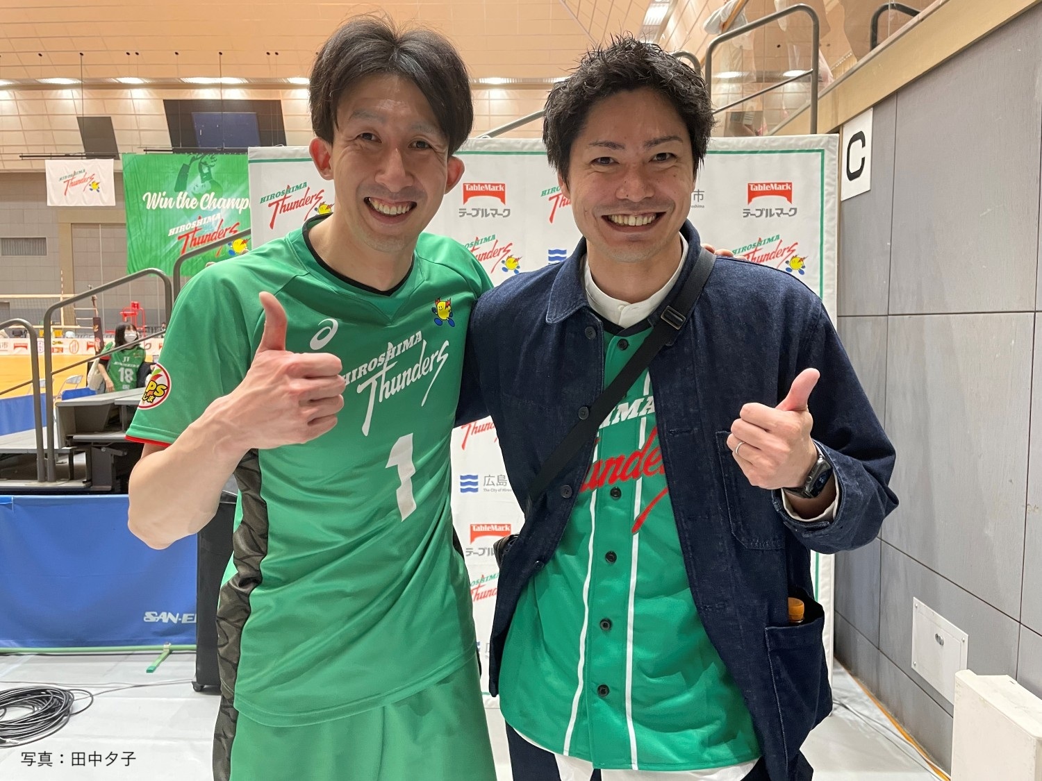 「『長いこと頑張ったね』と、労いの言葉をかけてもらえて、すごくうれしかったです。僕がバレーを始めた頃からずっと追いかけてきた憧れの人。八子さんと一緒にやりたい、と思って広島に来たので、最後のホームゲームを見に来てくれて、力になりました」。