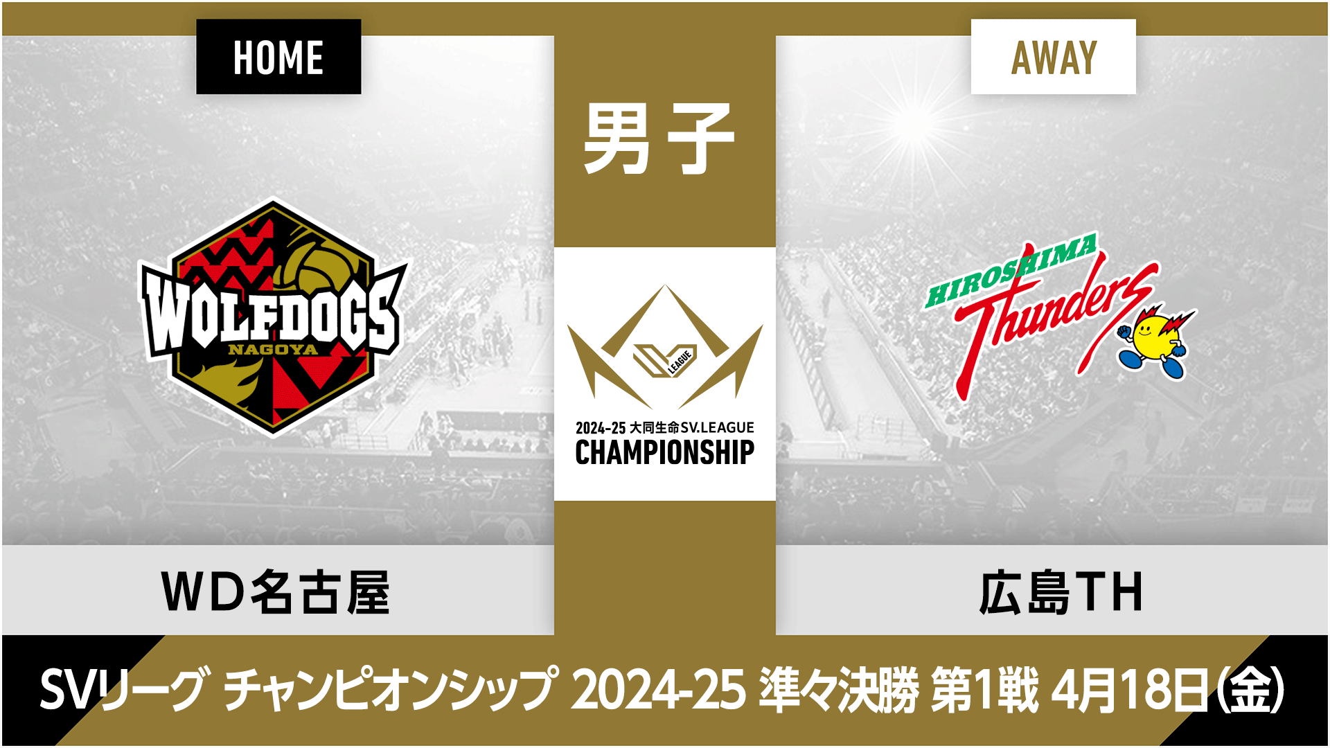 この2チームはレギュラーシーズンで6度対戦しており、成績はWD名古屋が6戦全勝と広島THを圧倒している。直接対決の獲得セット数も、WD名古屋が18-6と大差がついており、3月中旬に対戦した直近の第19節では、WD名古屋が2試合連続ストレート勝利と、ホームチームに死角がない状況でのマッチアップとなる。