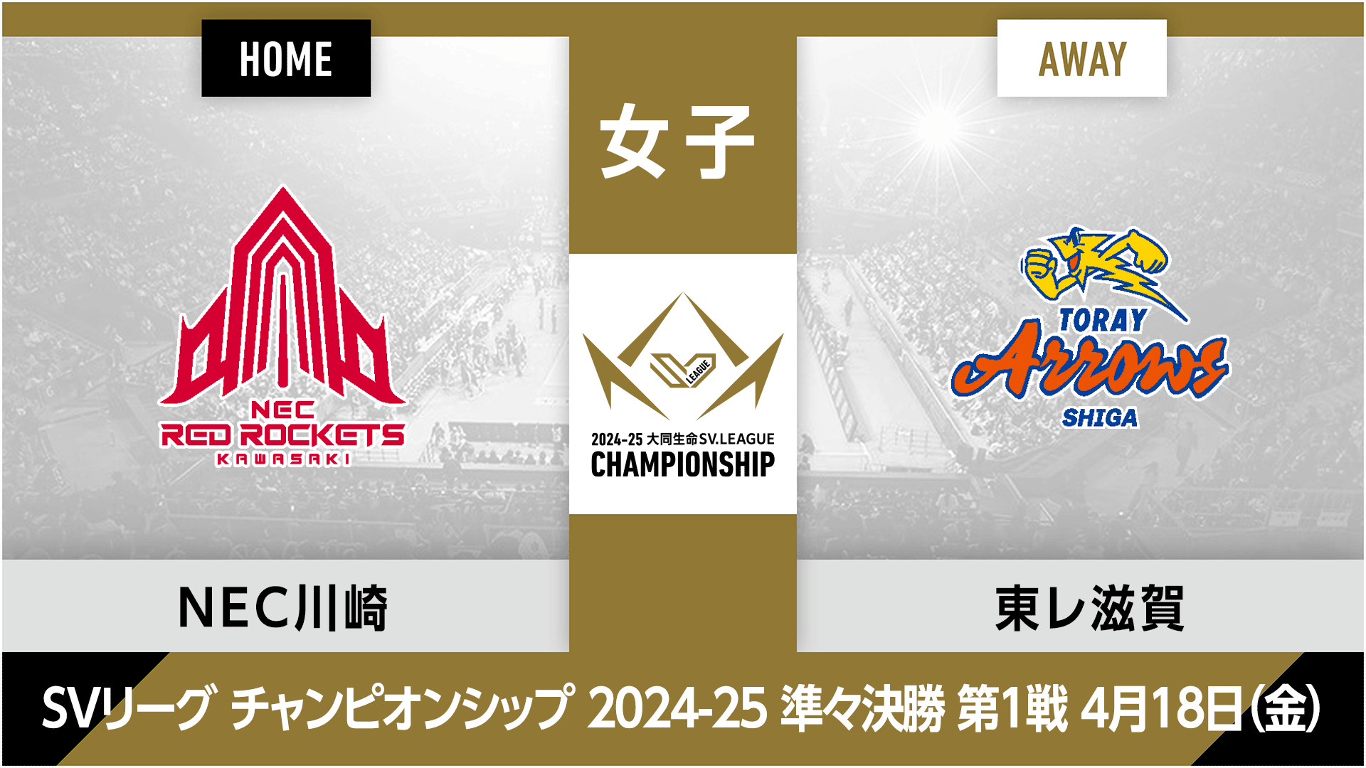 ・午後7:05 NECレッドロケッツ川崎 vs. 東レアローズ滋賀