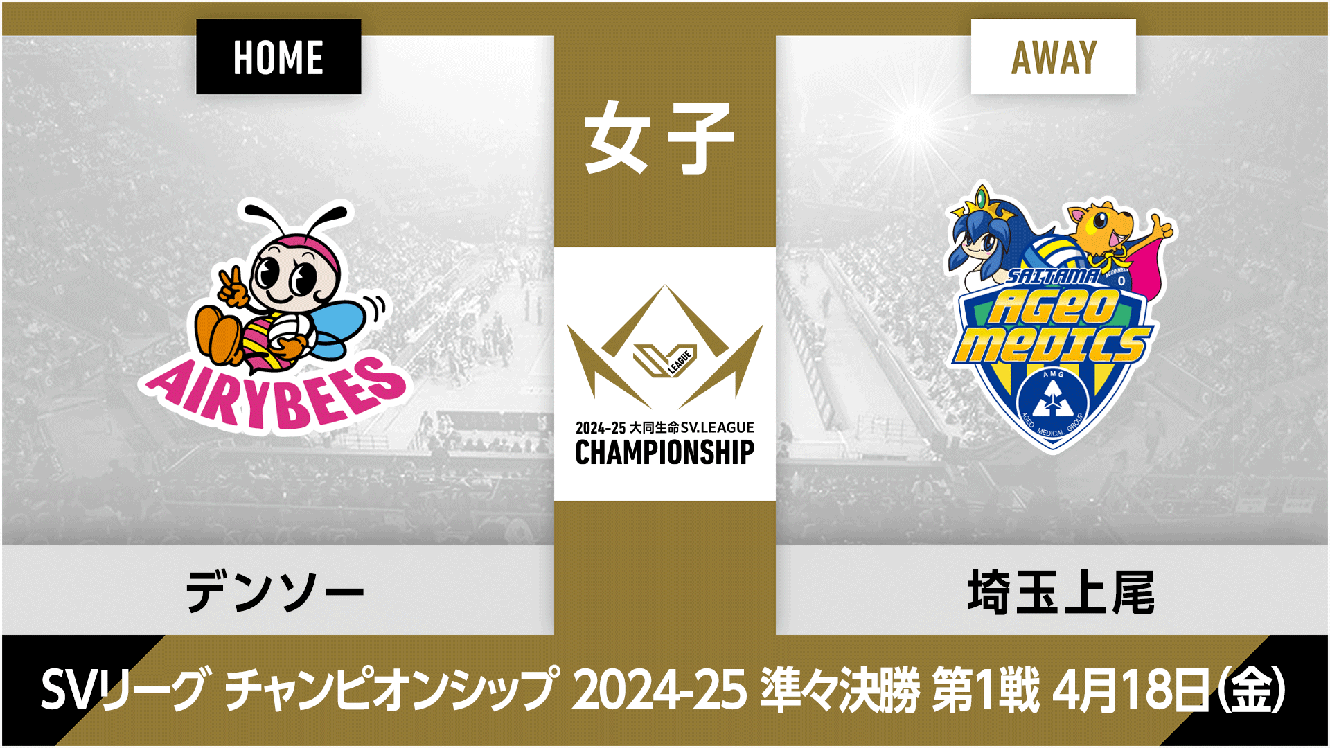 この両者はレギュラーシーズンで4度対戦し、埼玉上尾が3勝1敗と勝ち越してはいるが、リーグ屈指のアタッカー(モンチベレル ロザマリア)、ブロッカー(麻野七奈未)、そしてサーブレシーバー(川畑遥奈)を擁するデンソーとの実力差はかなり拮抗している。