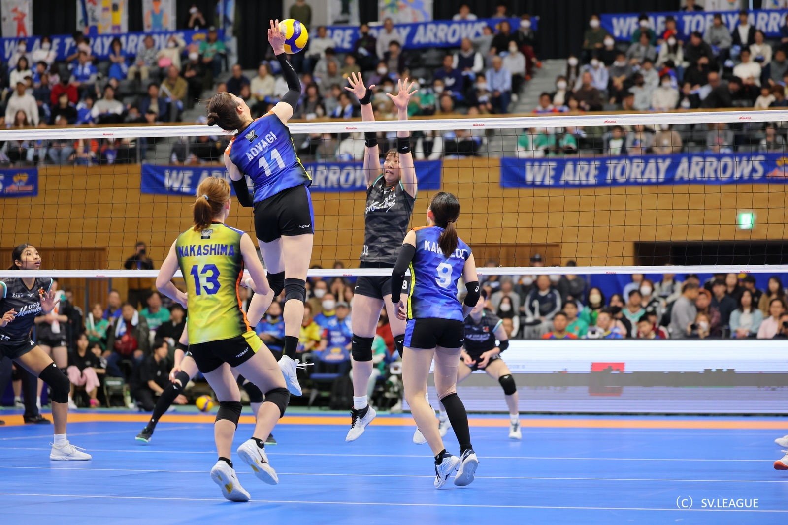 まもなく始まるクォーターファイナルでも熾烈な戦いが繰り広げられるであろう期待は高まるが、4月12・13日に行われた女子レギュラーラウンド最終週では、すでに優勝を決めた大阪マーヴェラスと、東レアローズ滋賀が対戦。