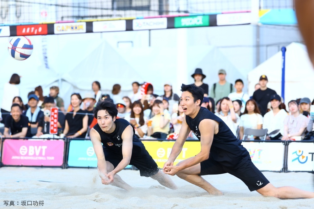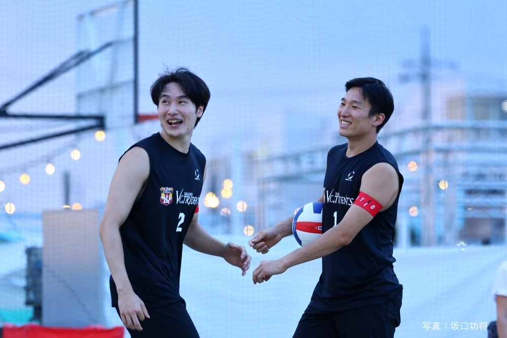 大会には普段、インドアでプレーするSVリーグ、Vリーグ男子の選手たちもペアを組んでビーチバレーに参戦を果たした。その中、リーグ勢で最高となる最終13位の成績を残したのが、SVリーグのVC長野トライデンツから参加した藤原奨太/飯田孝雅ペアだった。