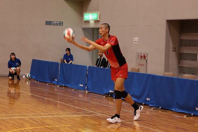 その言葉に違わず、第1セットは田中だけでなく、チーム全体が緊張からミスが相次ぎ、9-13と一時は4点をリードされた。中盤から主将の尾田原琉碧(3年)の攻撃を軸に得点を返し、終盤に同点とした後、田中のサーブで崩したところからミスを誘い、28-26で第1セットを先取。