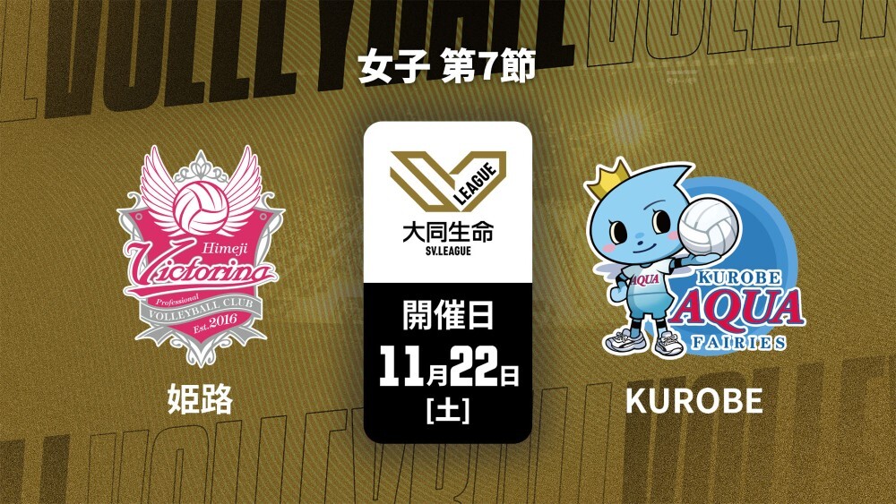 2位で第7節を迎えるヴィクトリーナ姫路は、『ヴィクトリーナ・ウインク体育館』にて、8勝4敗で4位につけるKUROBEアクアフェアリーズと対戦する。