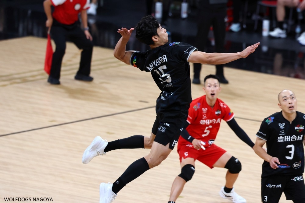 フルセットでヴォレアス北海道を下したウルフドッグス名古屋の宮浦健人は少しばかり苦悶の表情を浮かべていた。聞いたところ、その日の試合の第3セットでディグ(スパイクレシーブ)に入った際、隣にいたティモシー・カールと接触。カールのすねが宮浦の腰あたりにヒットしたのだという。