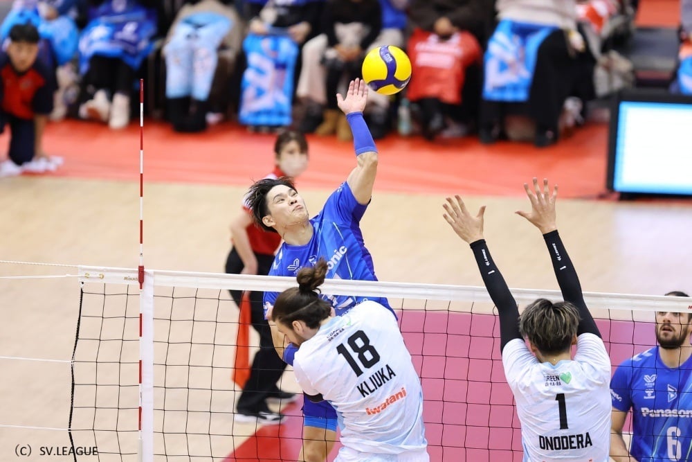 サムエルボ監督が開幕前から「今季は成長した」と話していたように、セッターの中村がラリー中もミドルやバックアタックを多用し、中盤に逆転。デュースにもつれたが26-24でこのセットを奪取した。
