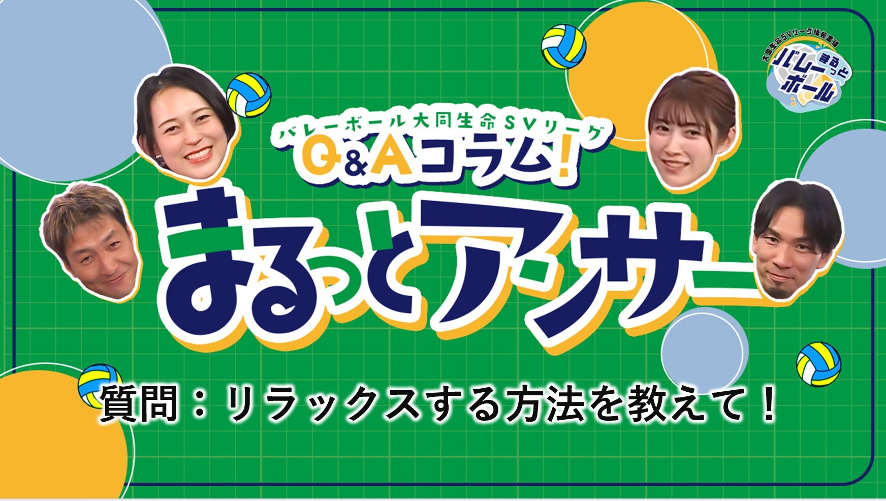 大同生命SVリーグ情報番組『まるっとバレーボール』に出演くださった元日本代表選手の豪華ゲスト陣に、視聴者からの質問に答えていただくコーナー。今回は第5回です。