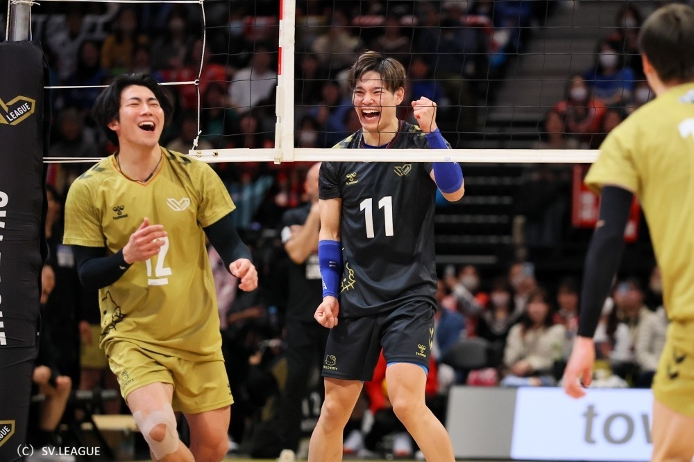 普段はウルフドッグス名古屋でチームメイトとしてプレーする水町 泰杜と宮浦 健人が両チームのキャプテンとして対峙したバレーボールの祭典。
